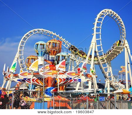 Our Stock Photographer #19603847 was taggins this picture as amuse amusement around blue boardwalk carnival carnival rides carousal carousel childhood circus coaster colorful enjoyment entertainment exciting fair fairground family ferris wheel festival fun funfair joy merry merry-go-round movement old fashioned park play pleasure recreation ride roller coaster rollercoaster round skyline summer theme theme park toy vacation vibrant wheel youth