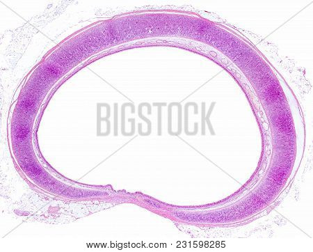 Our Stock Photographer #231598285 was taggins this picture as cartilage cell epithelium histology microscope microscopy mucosae prismatic pseudostratified respiratory rings tissue trachea tracheal