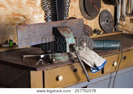 Our Stock Photographer #257752078 was taggins this picture as appliance background board business cog construction cutter dirty element engineering equipment factory glasses gloves grain grinding grunge handmade hard home indoor industrial industry iron lathe locksmiths machine machinery manufacturing master mechanic metal mill old one place plant protective retro shop steel technology tool vertical vice vintage work working workshop